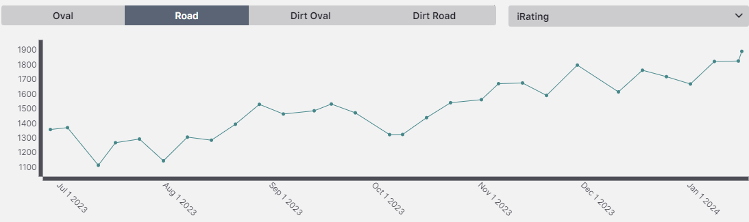 iRatingの方も、スタートいくつだったかな・・・ 1600 ~ 1850ぐらいを推移してる感じ。画像のは最高値なので今の状態じゃないのであしからず。